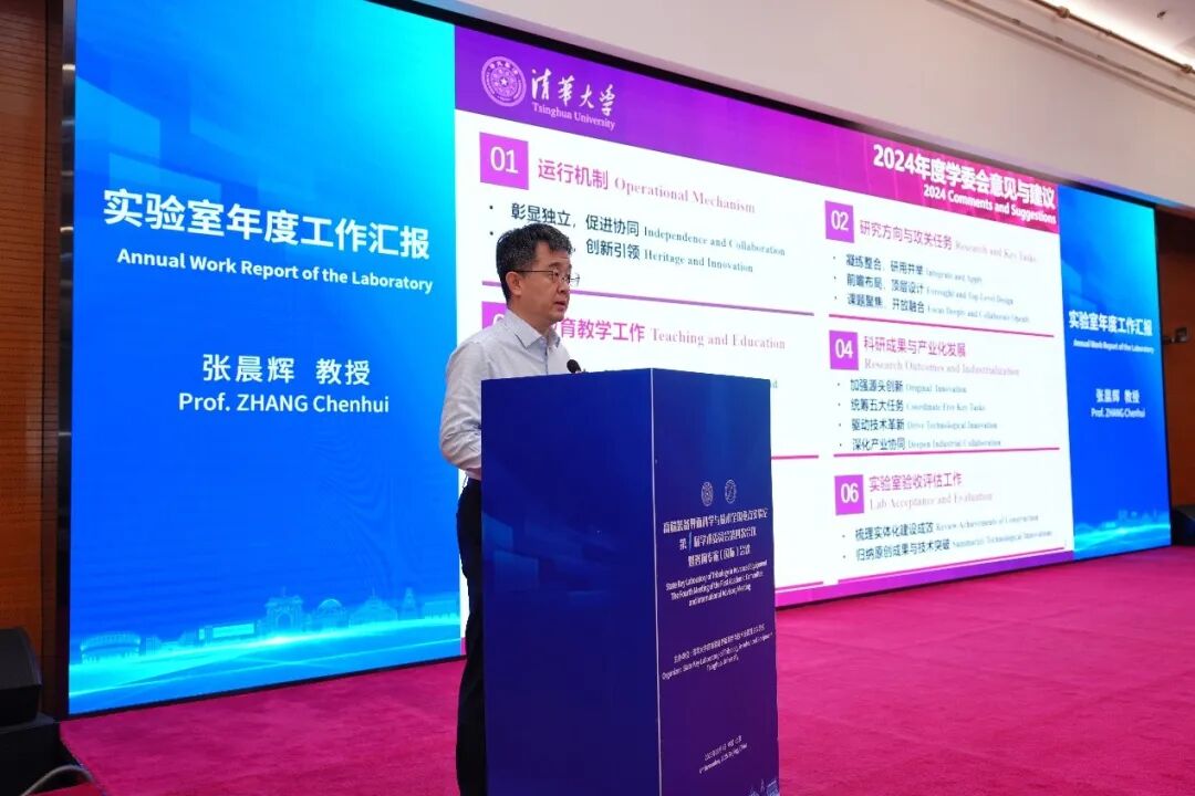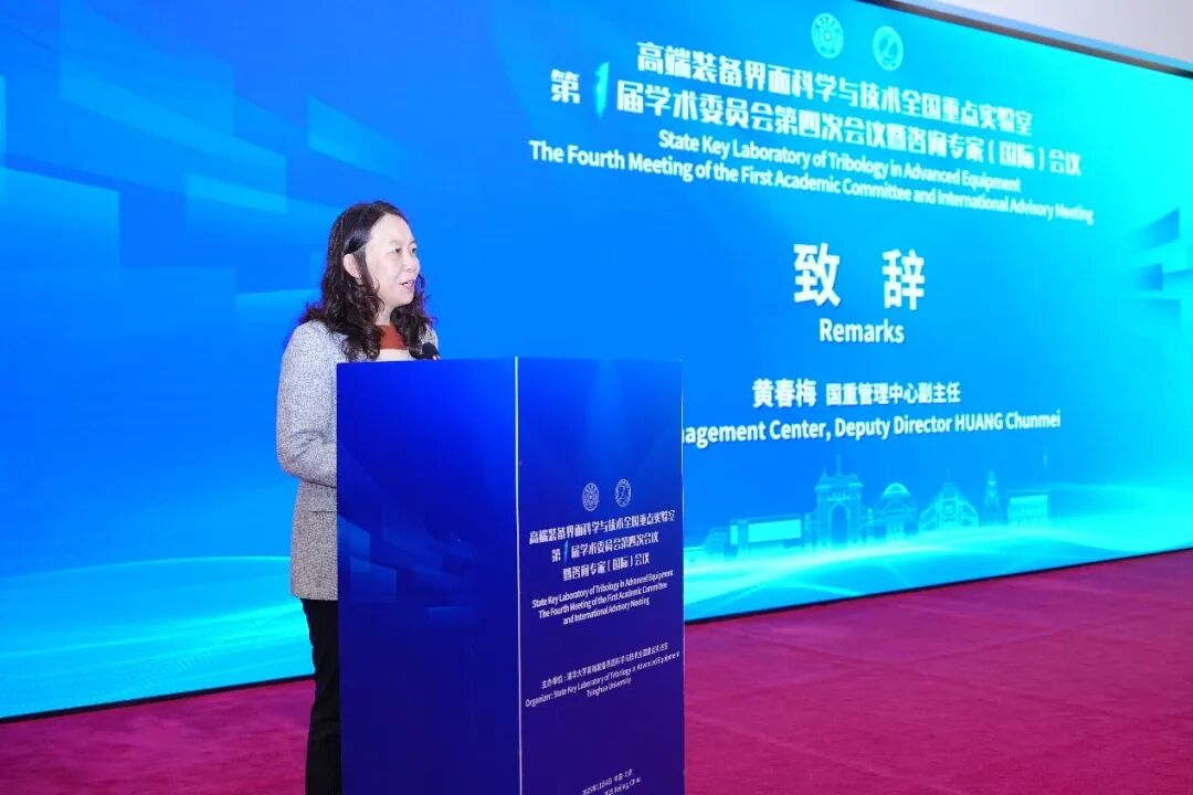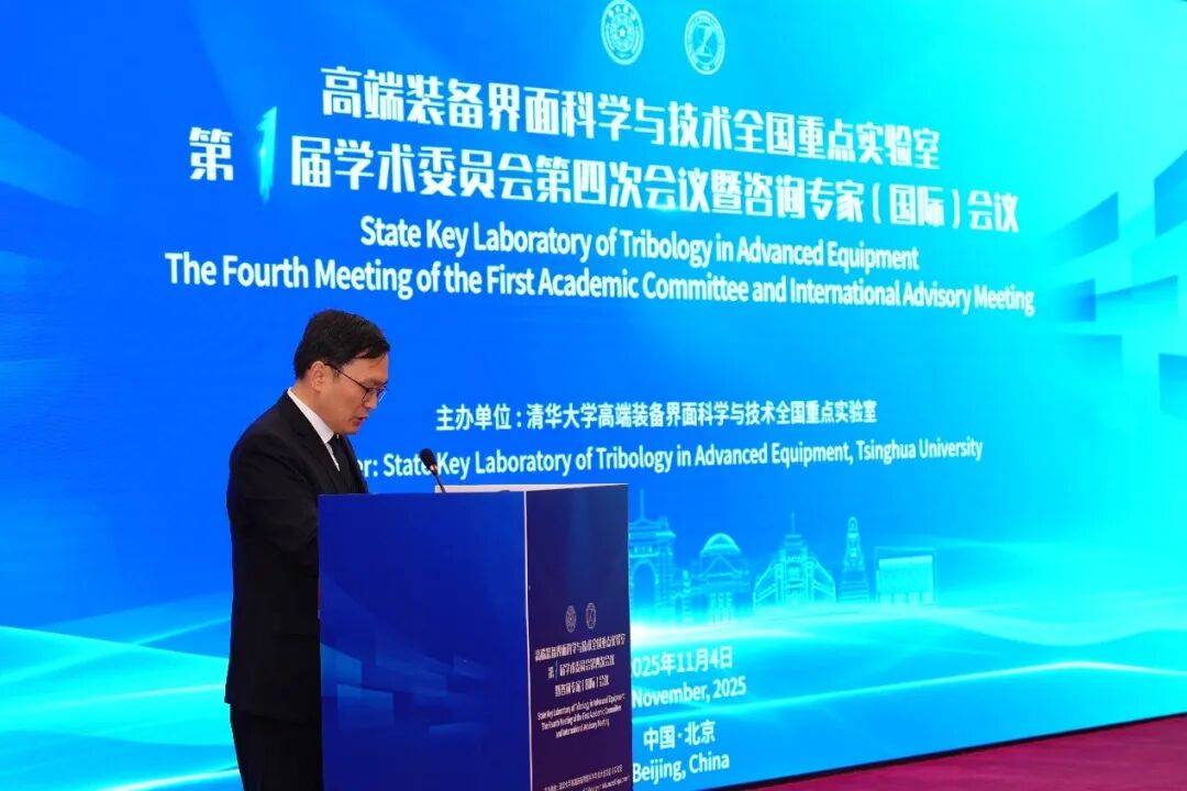 实验室副主任解国新教授主持开幕式。清华大学国重管理中心副主任黄春梅首先代表学校致欢迎辞,对与会专家的莅临指导表示热烈欢迎和诚挚感谢。她指出,实验室重组以来始终锚定世界科技前沿、紧扣国家重大需求,在基础研究与技术攻关中取得一系列标志性成果,期待在专家们的悉心指导下,持续打造高端装备界面科学领域的创新高地。清华大学机械工程系党委书记熊卓教授在致辞中强调,实验室在实现独立化、实体化运行后,通过领导交叉任职、教师双聘、资源共享等协同机制,与机械工程系形成发展合力,希望各位专家为实验室中长期规划把脉定向。