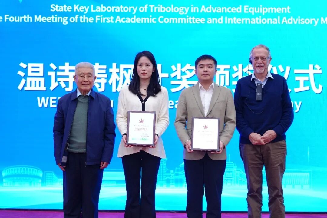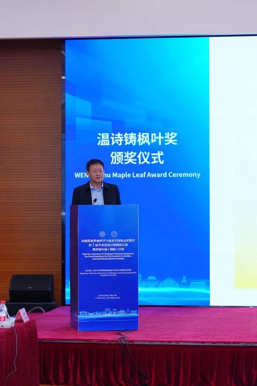 学术委员会主任葛世荣院士主持年度工作汇报和温诗铸枫叶奖颁奖仪式。实验室副主任张晨辉教授全面梳理了2024年专家意见的落实成效,详细介绍了2025年度实验室在体制机制改革、人才队伍建设和科研创新进展等方面取得的关键进展,并汇报了“十五五”工作规划的初步设想。会议同期举行了第十四届“温诗铸枫叶奖-优秀青年学者奖”颁奖仪式,温诗铸奖励基金会主席、北京清华前沿交叉研究院院长田煜教授宣布获奖者名单,中国矿业大学(北京)程洁教授与南京理工大学陈翔教授荣获该奖项。王玉明院士与Jacob Klein教授共同为两位获奖者颁发了证书。