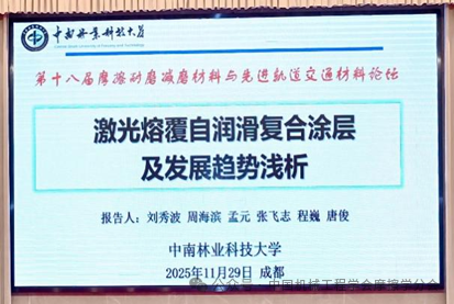 中南林业科技大学刘秀波教授作了题为《激光熔覆自润滑复合涂层及发展趋势浅析》的大会邀请报告。