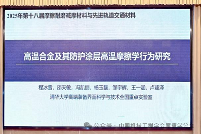 清华大学程冰雪博士作了题为《高温合金及其防护涂层高温摩擦学行为研究》的大会邀请报告。