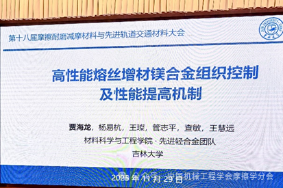 吉林大学贾海龙教授作了题为《高性能熔丝增材镁合金组织控制及性能提高机制》的大会邀请报告。