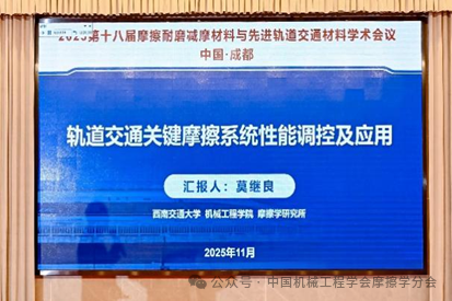 西南交通大学莫继良教授作了题为《轨道交通关键摩擦系统性能调控及应用》的大会邀请报告。